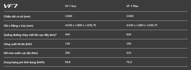 Lấy cảm hứng từ vũ trụ và các vật thể bay trong không gian, VF 7 hiện thân cho sự tự do, công nghệ, thời đại, cá tính, mạnh mẽ và thể thao, thoả mãn mọi tâm hồn đam mê thẩm mỹ và tốc độ.