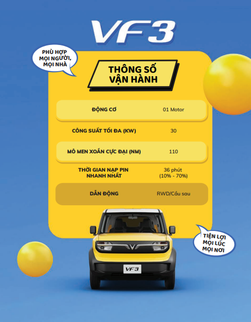 Như vậy, VF 3 được khẳng định là đặc biệt thích ứng với lối sống hàng ngày của người dân như đi làm, đi chợ, đi siêu thị hay đón trẻ em, người già; có thể thay thế hoàn toàn một chiếc xe máy trong một số trường hợp. Điều này giúp VF3 trở thành giải pháp giao thông thông minh cho các khu đô thị đông dân cư như Hà Nội, TP.HCM và các thành phố lớn khác.